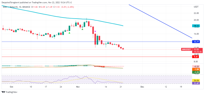 AVAX price analysis on the Daily Chart for 22 November 2022
