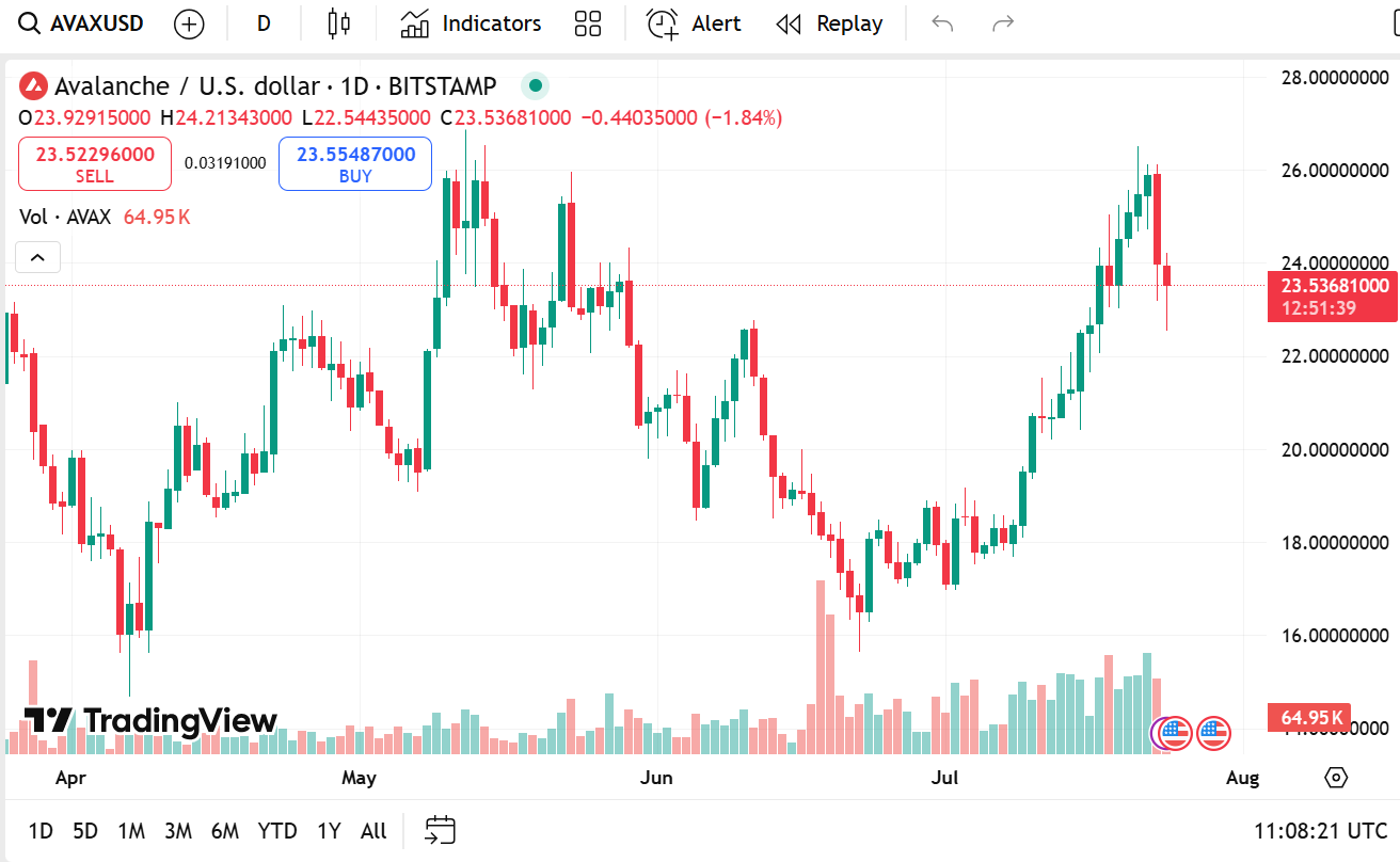 Avalanche, at other times praised for its speed and scalability, now trades at $23.39, down by 6.45% over the last 24 hours. Its market cap is $9.87 billion, trading volume of $890.5 million, which went down somewhat by 1.62%.