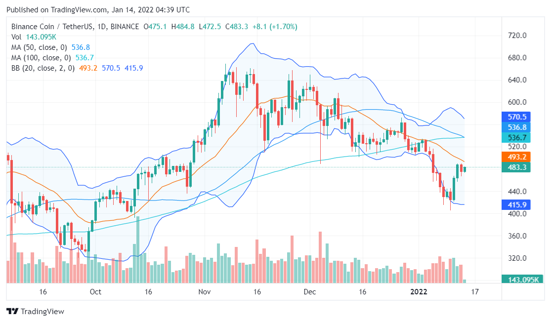 Binance Coin price analysis for Jan 14, 2022, suggests that the token is aiming for $500 but needs a little push for that. Being the native token for the world’s biggest cryptocurrency exchange, Binance, the BNB token has received massive exposure from investors.