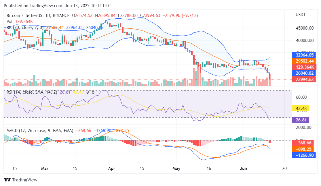 Bitcoin price analysis for June 13, 2022, ends on a bearish note for BTC with a high possibility of dropping to $20K.