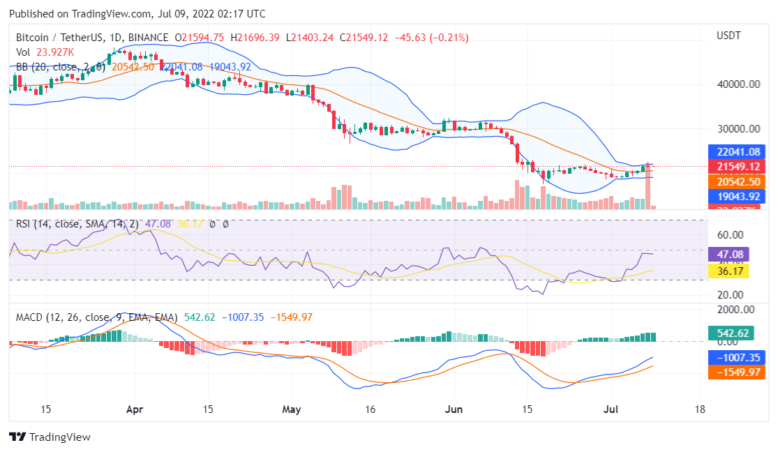 Bitcoin price analysis for July 9, 2022, will consider the data from the daily chart below with three major indicators integrated into it.