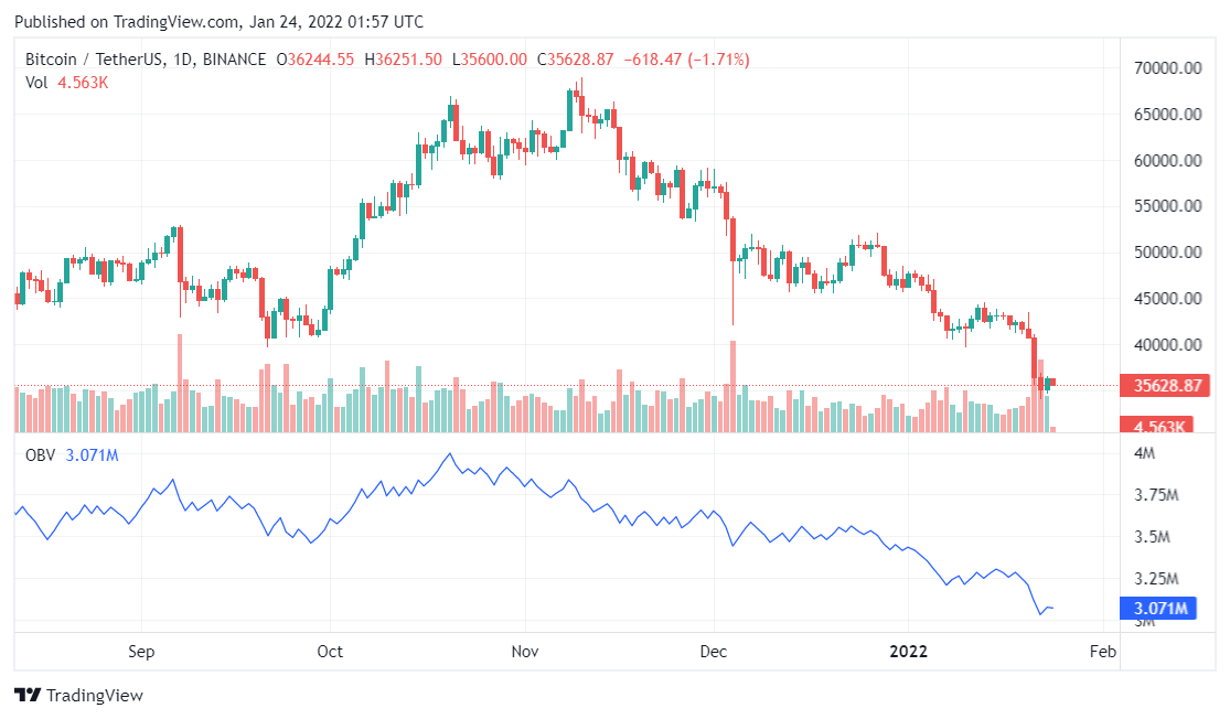 Bitcoin price analysis for Jan 24, 2022, suggests that the world’s biggest cryptocurrency aims for $37.5K while the market remains in a state of extreme fear. The token is trading at a price of $35.7K and is aiming to reclaim the important support of $37.5K and make its way towards $41K.