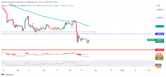 Bitcoin price analysis on the Daily Chart for 23 November 2022