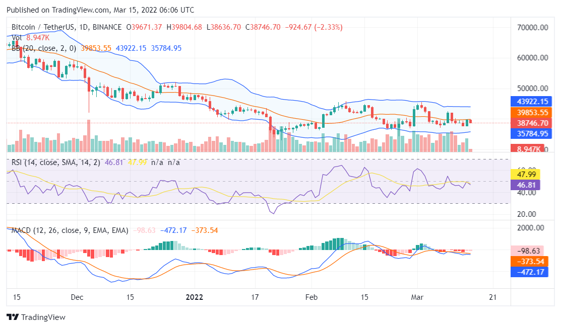 Bitcoin price analysis for March 15, 2022, shows that the world’s biggest cryptocurrency might be running out of fuel after all as the BTC bulls lose their grip over the price action. Moreover, as noted in our Bitcoin price analysis for March 14, 2022, the token has been running back and forth between the major resistance and support levels of $38.5K and $40K. In order to confirm an uptrend, the token needs to break above $53K.