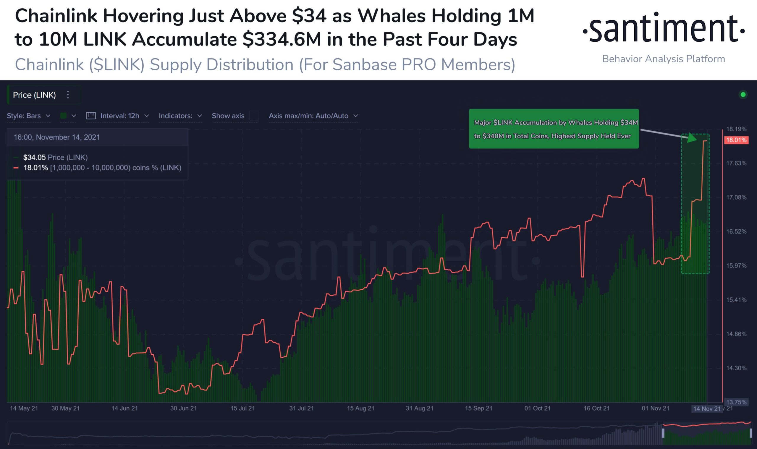 According to a report by on-chain data provider Santiment, currently, 64 addresses are holding between 1 million to 10 million Chainlink tokens. These wallets have grabbed around 1.89% of the total LINK supply to their bags in just the last four days.