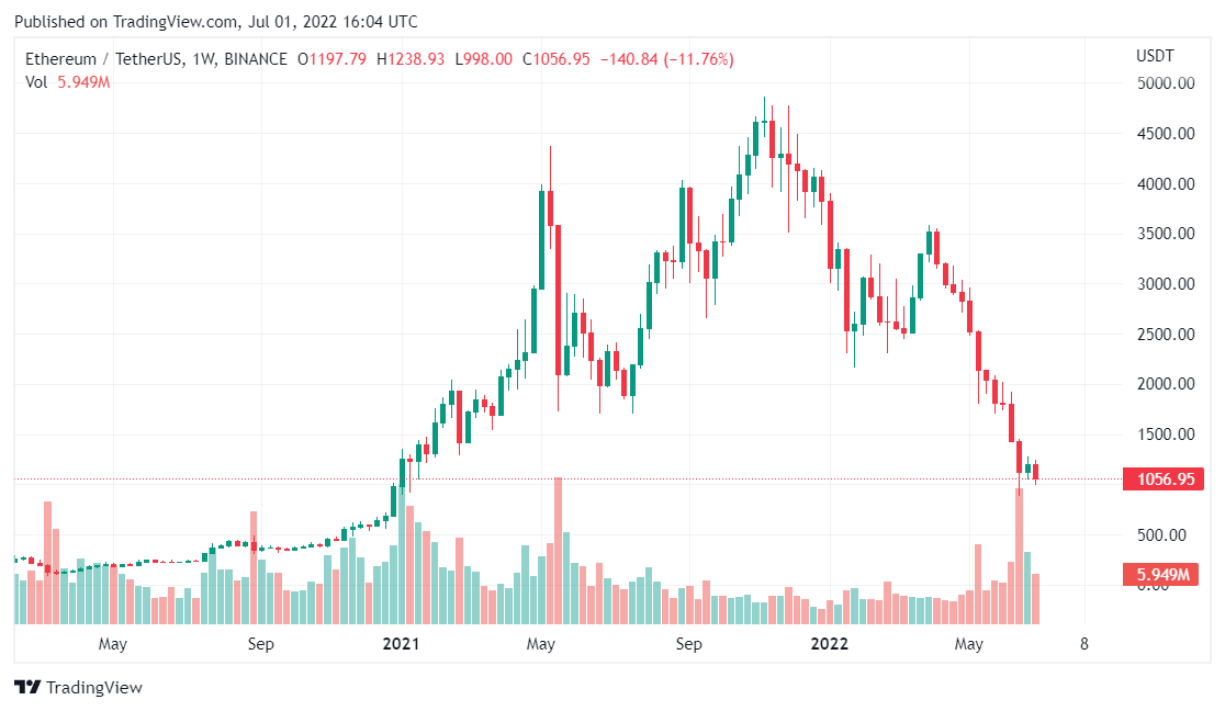 Ethereum began the week above $1200 and tried to turn this into a region of support. Investors aimed to reclaim $1500 as prices jumped by over 2%. The Ether token failed to hold $1200 and then the 2nd biggest token in the crypto market dropped to the $1000 price level. The price action currently holds above $1000.