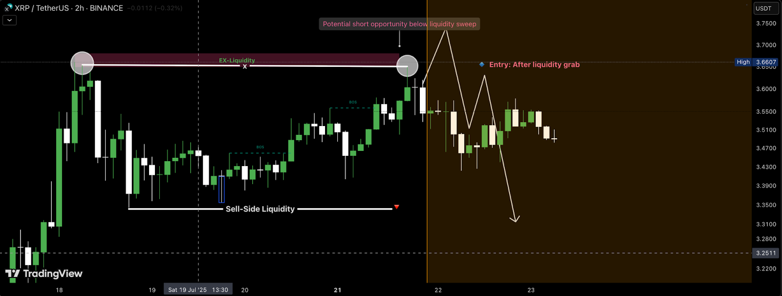 XRP has delivered solid gains in July, jumping over 55% and continuing its five-year streak of closing the month in the green. But recent signals suggest that the momentum may be cooling. The token reached just below its all-time high of $3.80, only to form what analysts now call a double top, a classic sign of potential reversal.