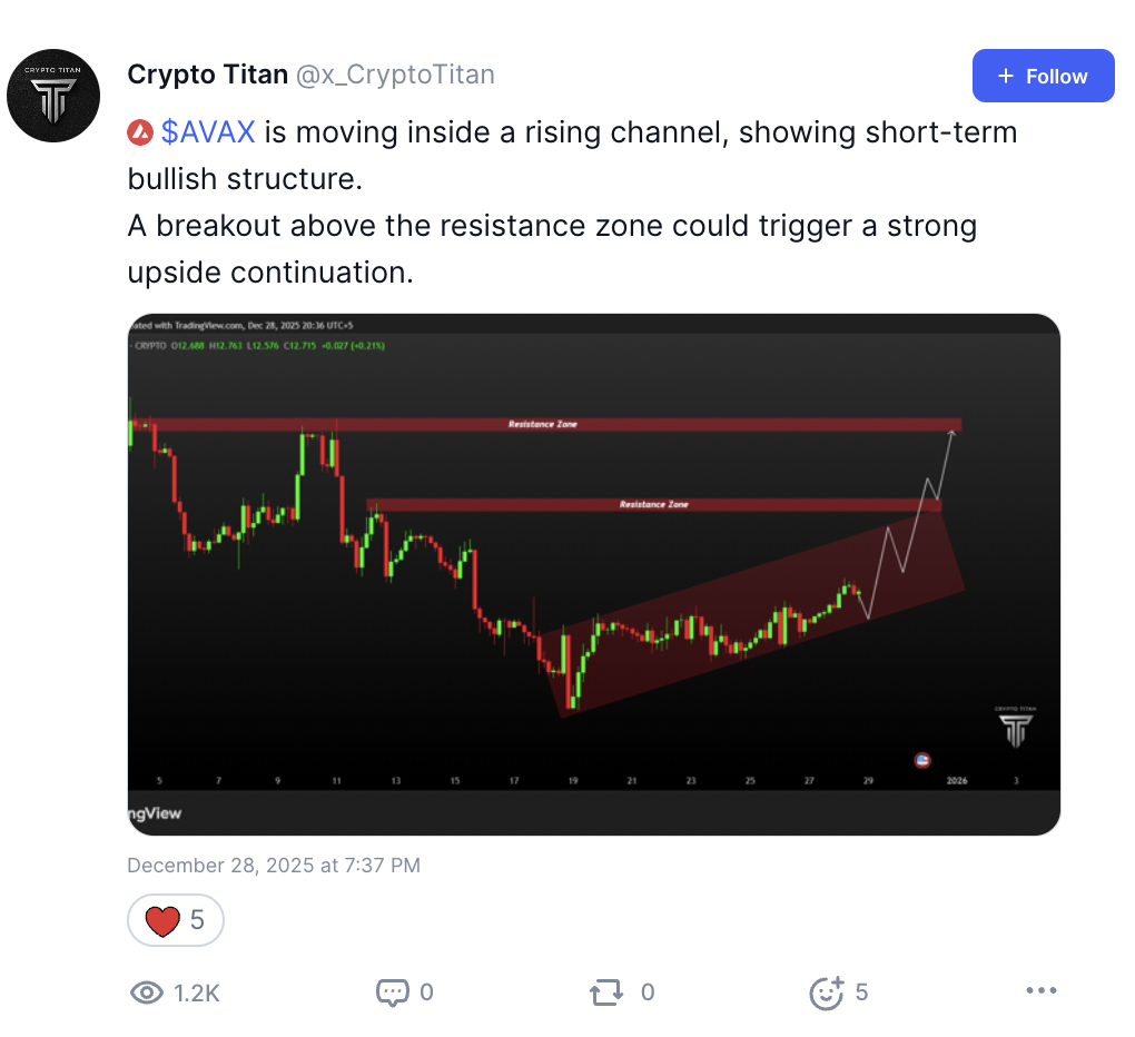 Avalanche is currently trading around $12.70, up roughly 3.5% over the past week. The move follows VanEck’s filing to list a spot AVAX ETF under the ticker VAVX, with Coinbase Custody managing staking and Anchorage Digital serving as custodian.