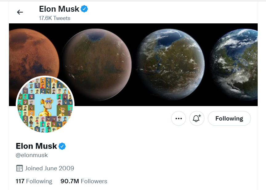 Elon Musk, the world’s richest man and Chief Executive Officer of Tesla Inc has recently changed his Twitter Profile, and surprisingly, he changed it to a collage of Bored Ape Yacht Club (BAYC) NFT Collection.