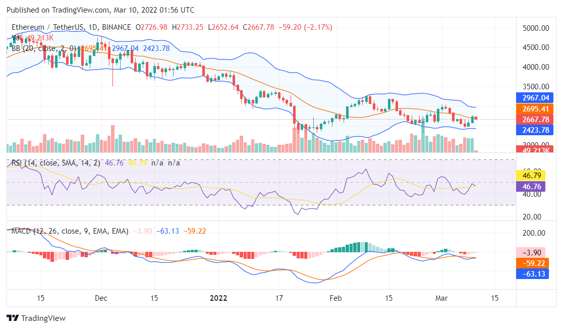 Ethereum price analysis for March 10, 2022, comes riding a bullish prediction for the token but it is important to note that the short-term analysis for the token shows that the situation is very risky to trade. As the market remains in fear of a world war and inflation, the chances of ETH reaching new all-time highs in the coming months are not very high. As noted in our ETH price analysis for March 9, 2022, the nearest price support is $2.5K.