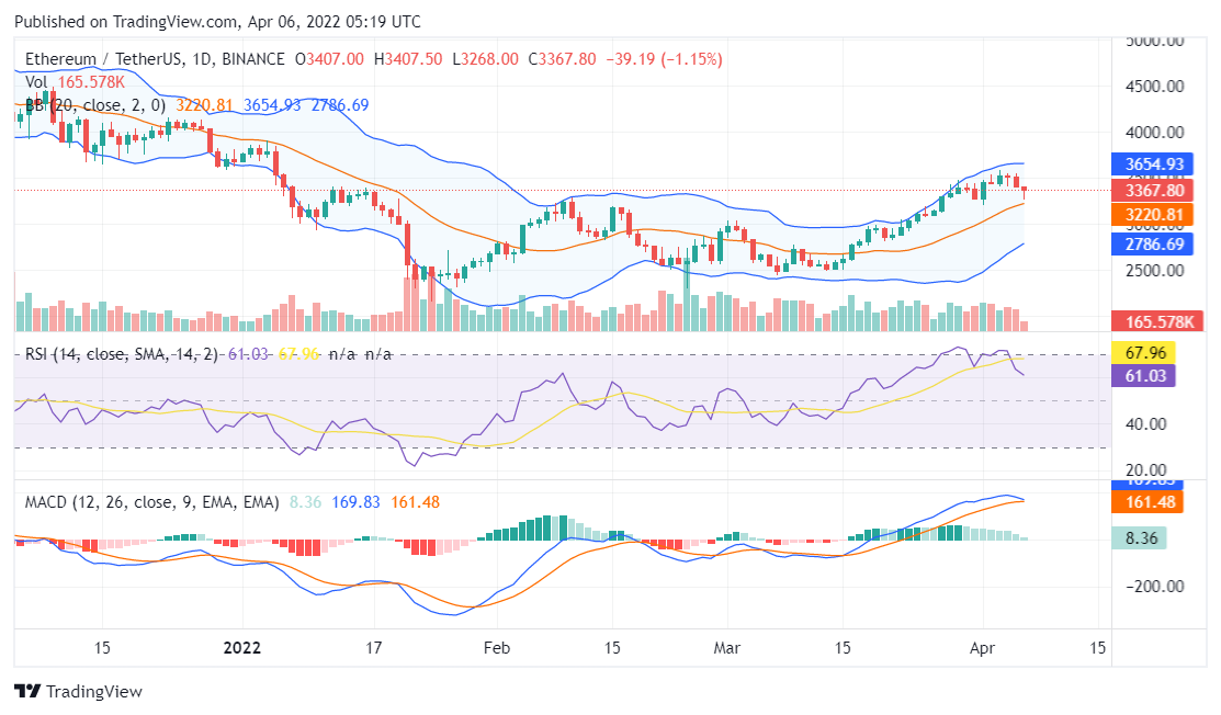 The Ethereum price analysis for April 6, 2022, ends on a bearish note for the token as the chances of losing $3.3K are possible.