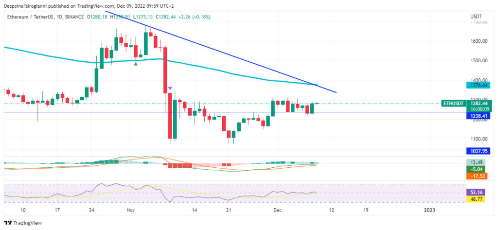 Ethereum price analysis on the Daily Chart for 9 December 2022