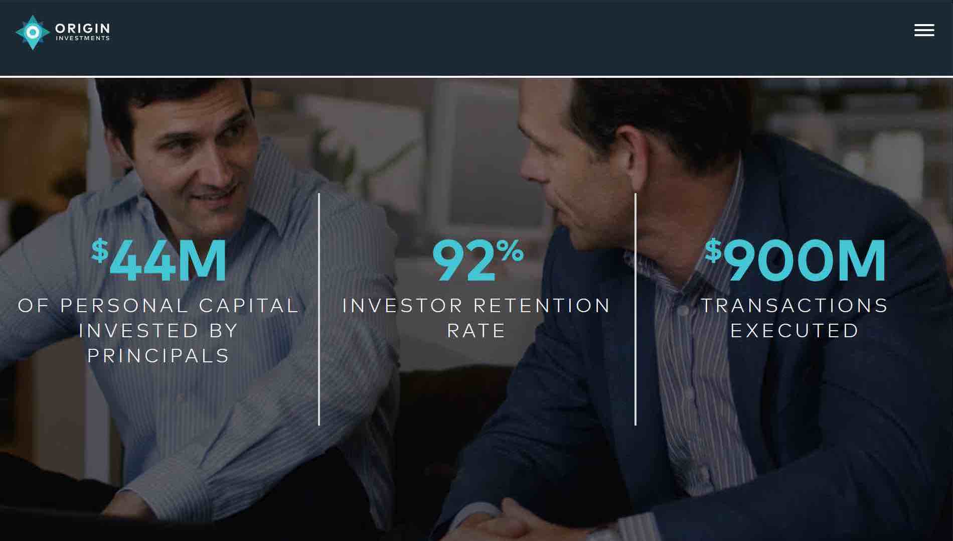 Origin’s two co-founders, David Scherer and Michael Episcope use Origin as their primary investment vehicle. This is unique to Origin’s crowdfunding business model. To date, they are the largest investors at Origin, with over $54 million committed alongside investors ensuring alignment of interest.
