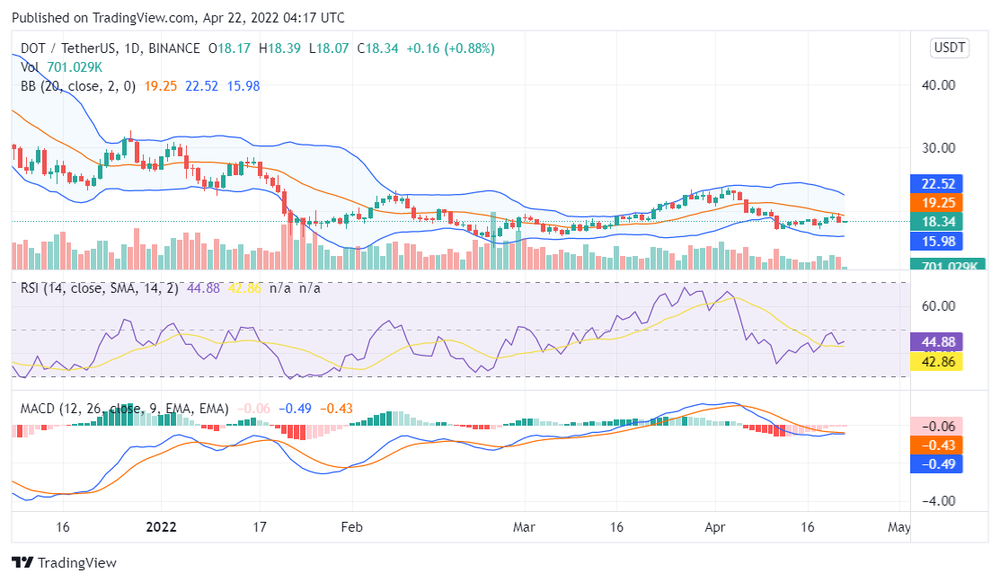 Polkadot price analysis for April 22, 2022, comes on a bearish note for the token as the token failed to consolidate prices above the $19. Moreover, in the last 24 hours, we saw a drop of 5.13% in the prices. The DOT token fell down to the 18 USD price region, and investors can expect a similar drop in the near future if bulls don’t take over. As predicted in our Polkadot price analysis for April 22, 2022, the DOT token aimed to push above $19 but failed to strengthen. On the other hand, the token is also more than 60% low than its all-time high.
