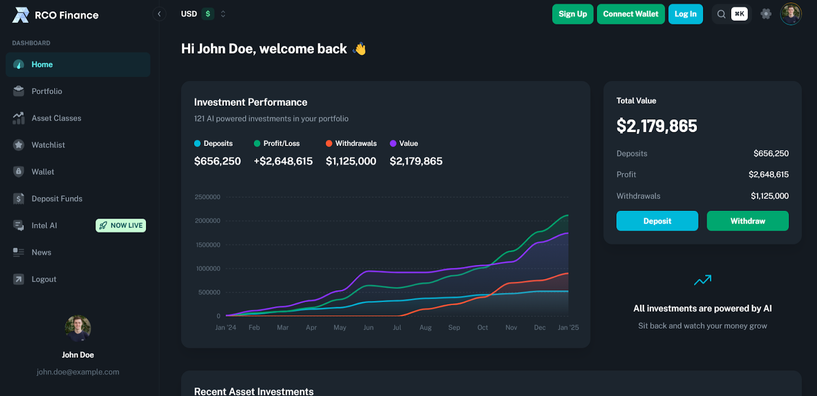 One of the unique innovations RCO FInance offers is its AI-powered Robo Advisor, a next-generation tool that delivers personalized investment strategies tailored to each user’s financial goals, risk tolerance, and prevailing market conditions.