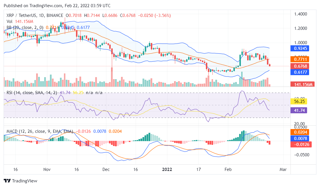 Ripple price analysis for Feb 22, 2022, confirms that the world’s sixth-biggest cryptocurrency has turned bearish and has fallen below the important support of $0.7. It is important to note that the chances of the token turning bullish in the coming days are very bleak. As noted in our XRP analysis for Feb 21, the token was unable to reclaim $0.8, which now seems very distant for the token.