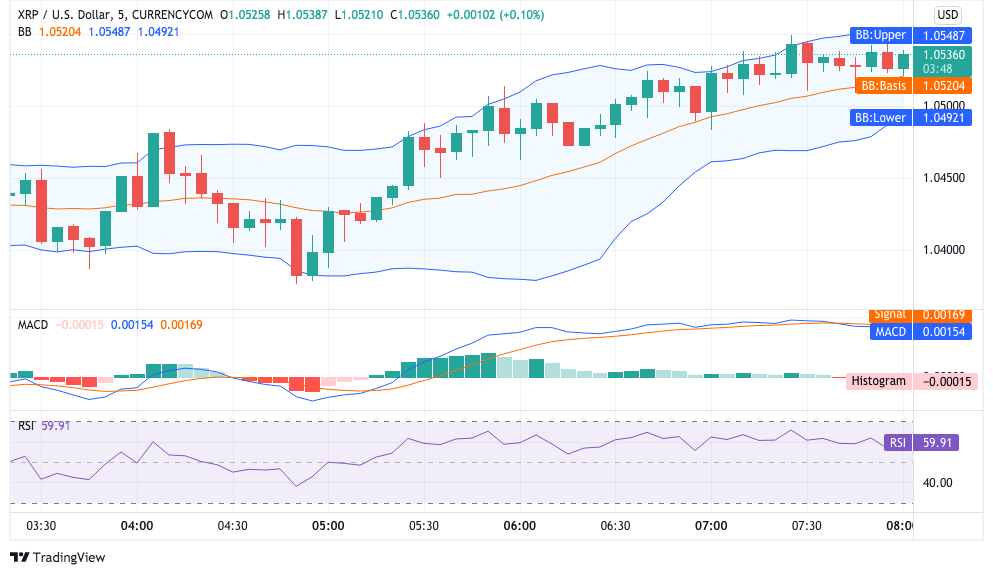 Over the last 24 hours, XRP/USD has traded in a narrow range of $1.01 to $1.06. Hence, suggesting little swings in price. Trading volume has decreased by 10.98 percent and stands at $2.99 billion. While the total market capitalization is currently around $49 billion, putting it in 7th position