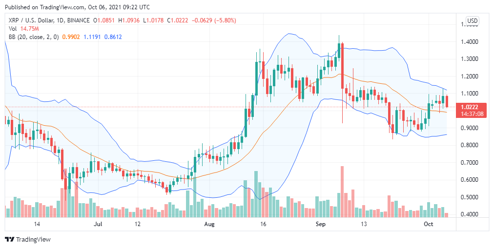 The service was reevaluated several times by September, culminating in a significant rally on 1st October. XRP/USD eventually rose to $1.09 on 3rd October, with the subsequent retrenchment being maintained at $1.01.