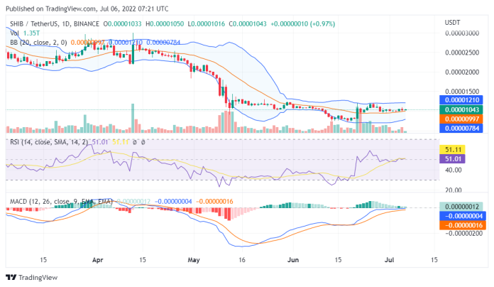 Shiba Inu price analysis for July 6, 2022, ends on a sluggish note as SHIB as it continues to move back and forth between $0.000010 and $0.000009.
