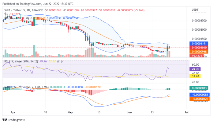 Shiba Inu price analysis for June 22, 2022, ends on a slightly bullish note for the SHIB token with high chances of testing $0.000011.