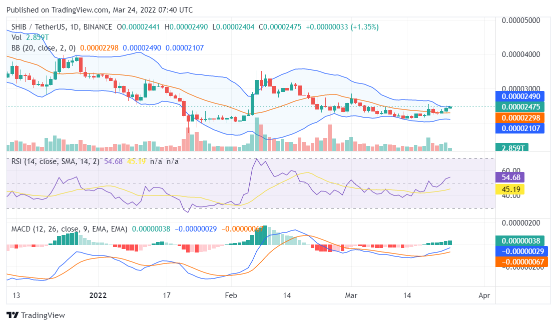 The Shiba Inu price analysis for March 24, 2022, confirms that the chances of SHIB breaking into $0.000025 are relatively high.