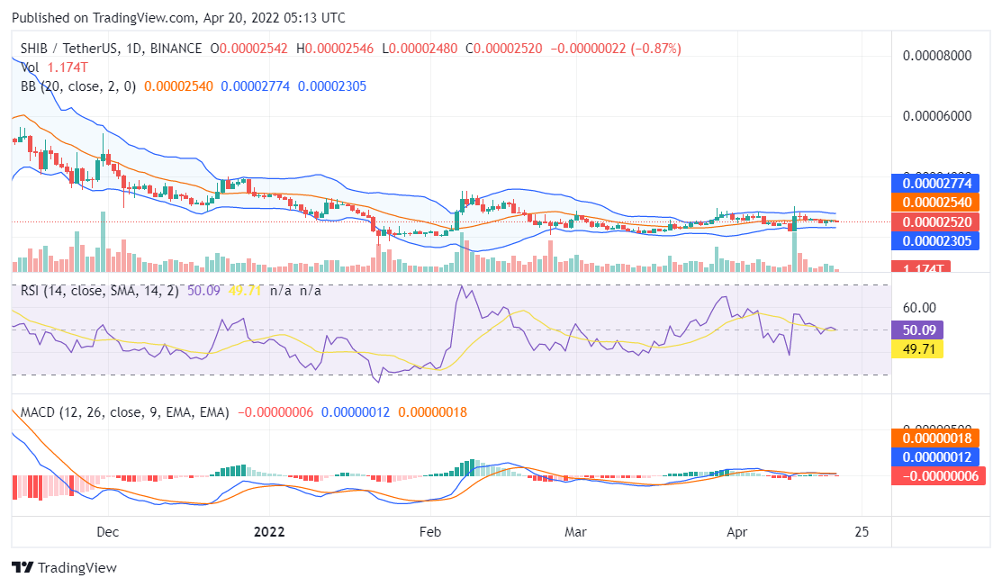 Shiba Inu price analysis for April 20, 2022, comes on a bearish note for the token which means that the chances of making higher highs seem considerable. Moreover, we have also seen SHIB retain support at $0.000025 and if this price region continues to hold, we might see SHIB at the $0.000030 price region as well. As noted in our SHIB price analysis for April 19, 2022, the token has major resistance at the $0.000026 as bulls tried to consolidate above this region but failed to do so.