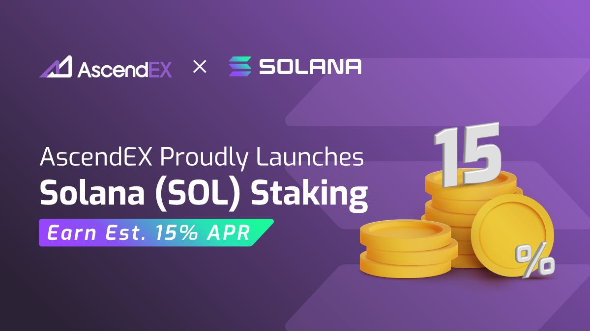 SINGAPORE, June 13, 2022 – AscendEX, a leading global cryptocurrency platform, is excited to announce the launch of Solana (SOL) staking, which will be available beginning June 13th at 2:00 pm UTC. AscendEX will offer 15% APR on staking deposits, allowing platform users to earn more than double the return paid to users on the majority of Solana staking protocols. Begin staking today at AscendEX Earn.