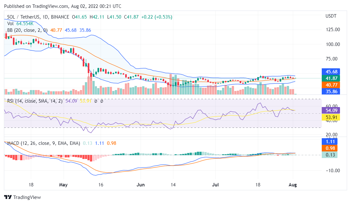 Solana price analysis for August 2, 2022, will take into account the data from the daily chart below and three major indicators integrated into it.