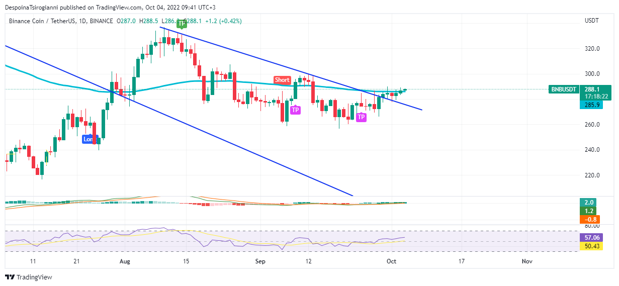BNB price analysis for 4 October 2022, BNB, the third largest cryptocurrency based on market cap, is in a downtrend since November 2021. The downtrend broke in August but the 50 weekly SMMA stood as resistance. On the second day of this week, it seems that buyers control the price based on the weekly Heikin […]