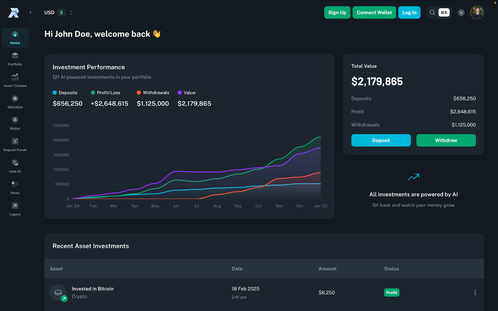 On the platform, users can experience the full power of the AI-powered Robo Advisor, explore the vast asset database, and witness real-time portfolio adjustments driven by advanced machine learning models.