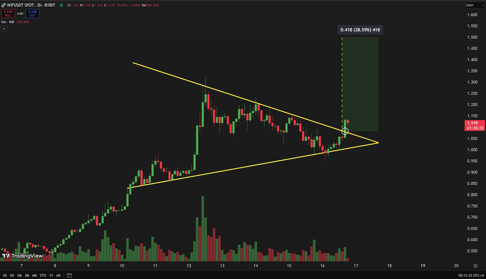 Trading volumes for Dogwifhat (WIF) are rising, and social media mentions are pushing it into the spotlight. Speculation suggests Dogwifhat (WIF) may rival established meme coins, with Carl Moon noting on X (formerly Twitter) that it could reach new highs, targeting $1.50. Analysts credit its unique branding for sustained virality and major exchange listings that increase liquidity.