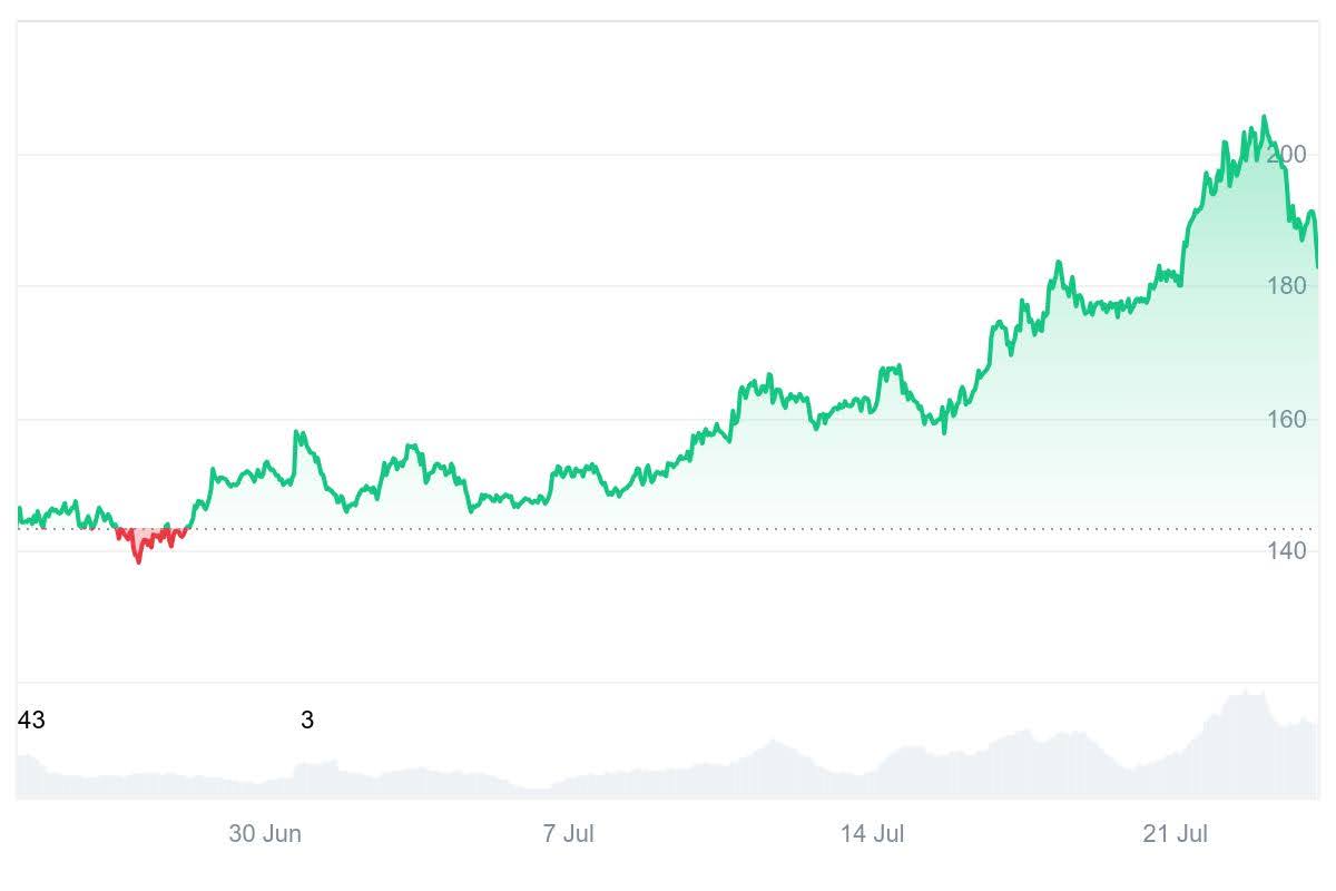 Solana price has retaken the spotlight with its recent breakout above $200, thanks to the reignited interest in meme coins that followed the launch of LetsBonk. In over a week, the meme coin launchpad has accrued over $1 billion in trading volume, alongside Solana’s premier meme launchpad, Pumpfun. The renewed interest pushed the SOL price above $200, with a bullish structure indicating a potential move towards the $220-$270 levels.