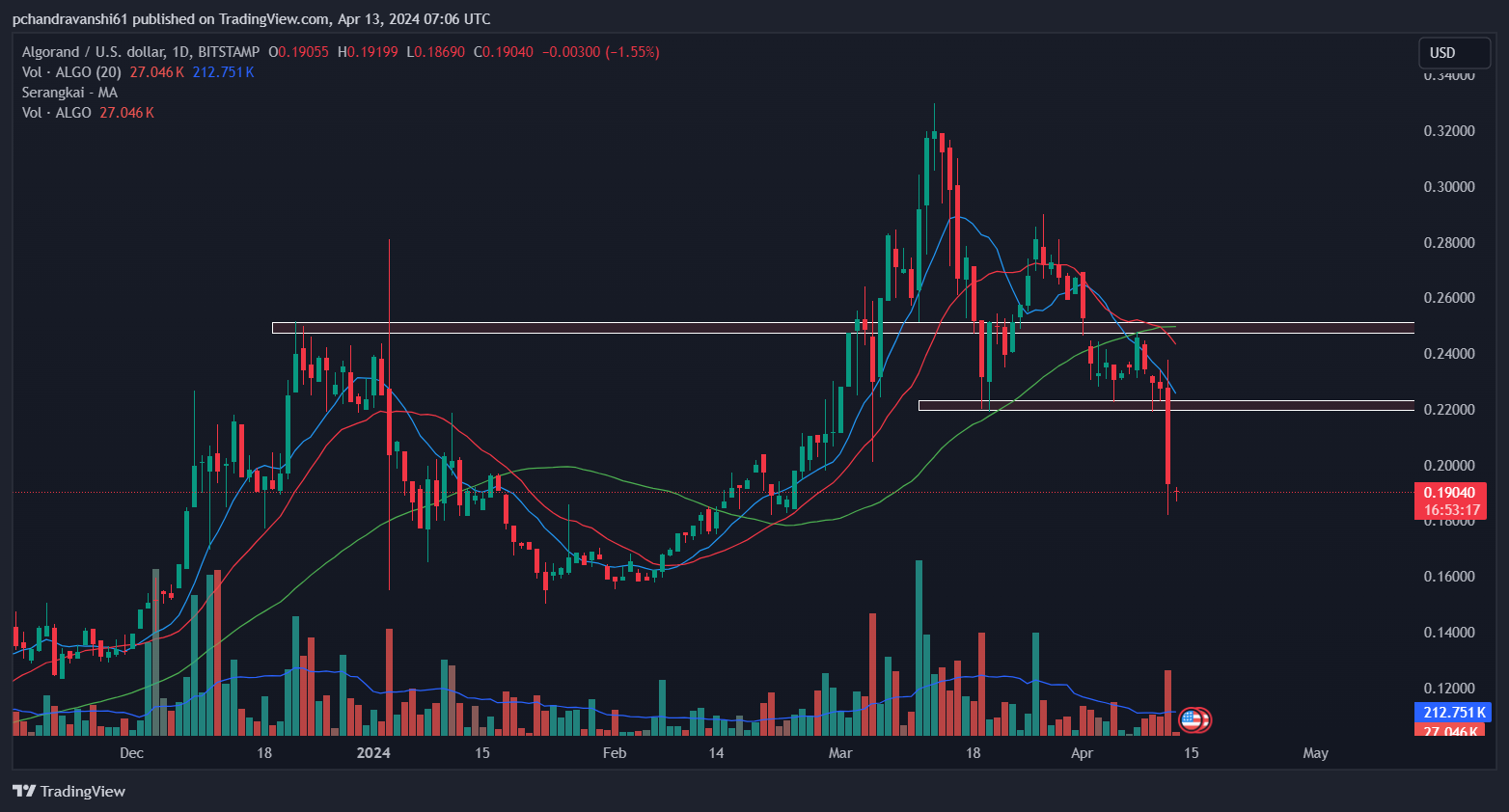 The price action of Algorand has been bearish since the correction came after the rally. On 12 this month, we saw a huge drop of 15.6%, which came after the consolidation near the support zone. On the same day, Bitcoin fell more than 4% to $65,298. In the long term, people are feeling positive about the market, and ALGO’s price has shown a major bearish move. However, it might take a while for it to fully recover and change its direction upwards.